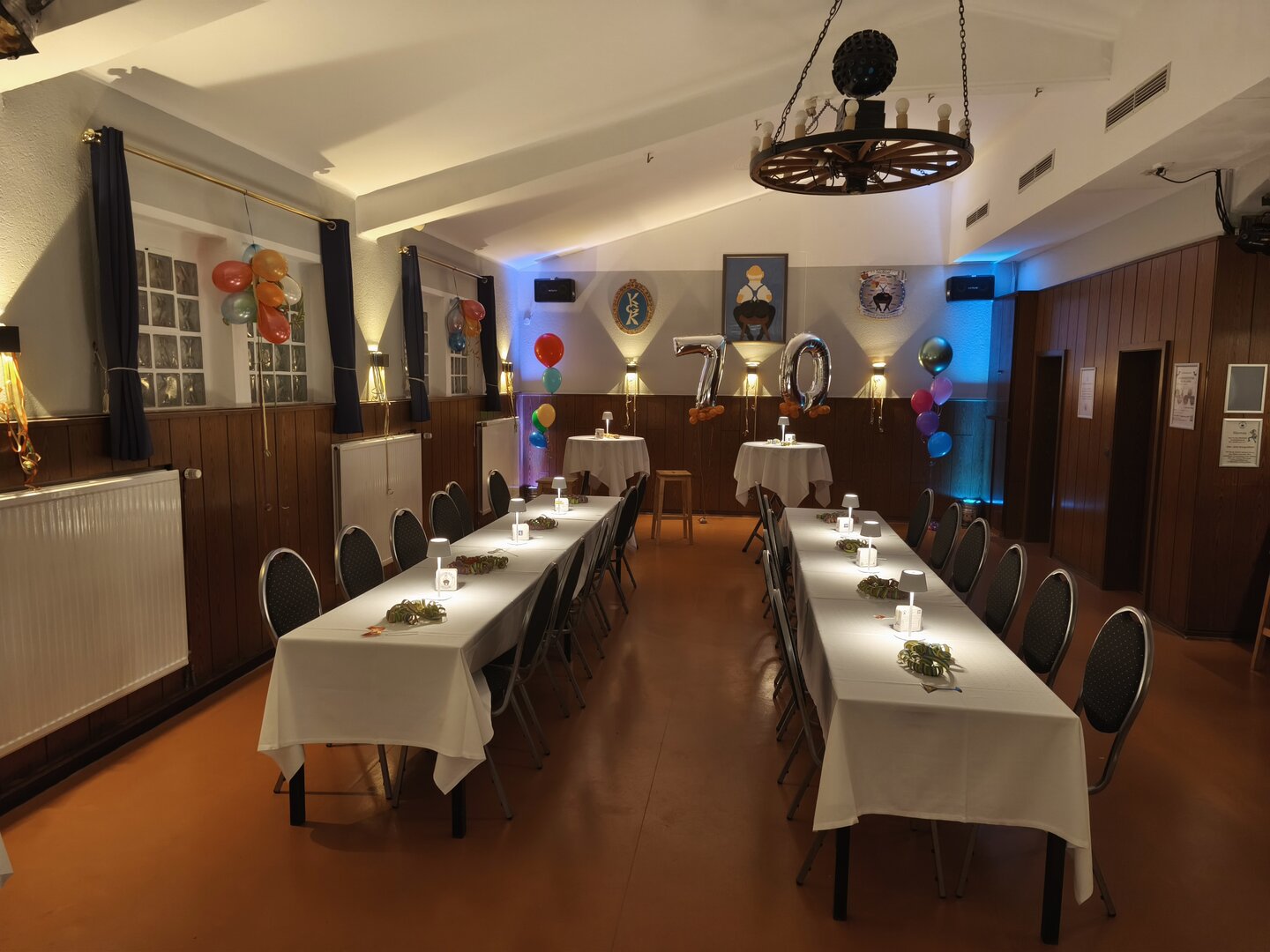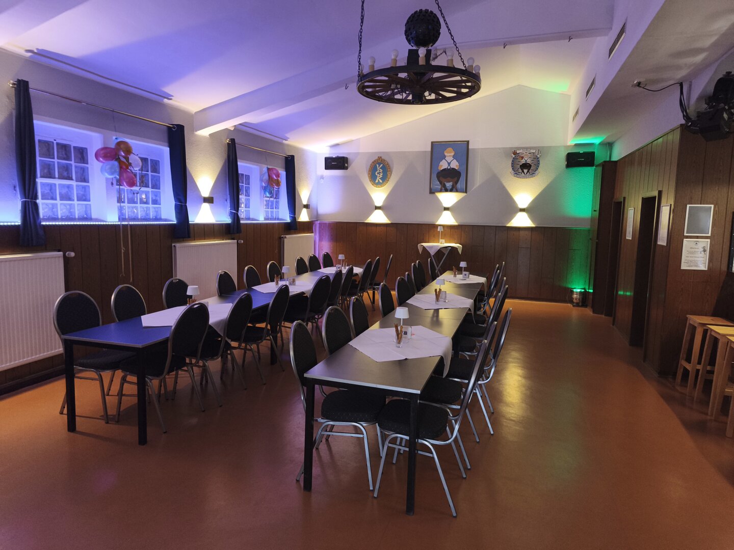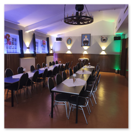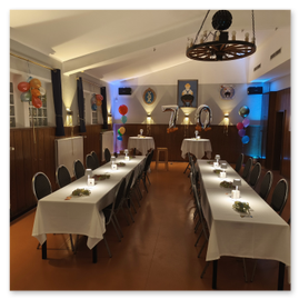 Der Saal mit Thekenbereich lässt viel Spielraum für Ihre Gäste. Mit bis zu 80 Personen können Sie feiern.