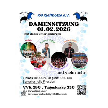 Bestellungen nehmen wir gerne unter hier entgegen bzw. Rückfragen unter kartenvorverkauf@kg-kleffbotze.de.
