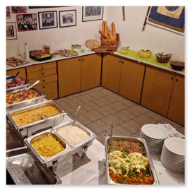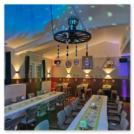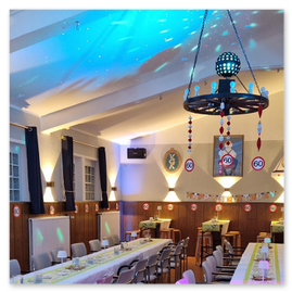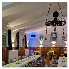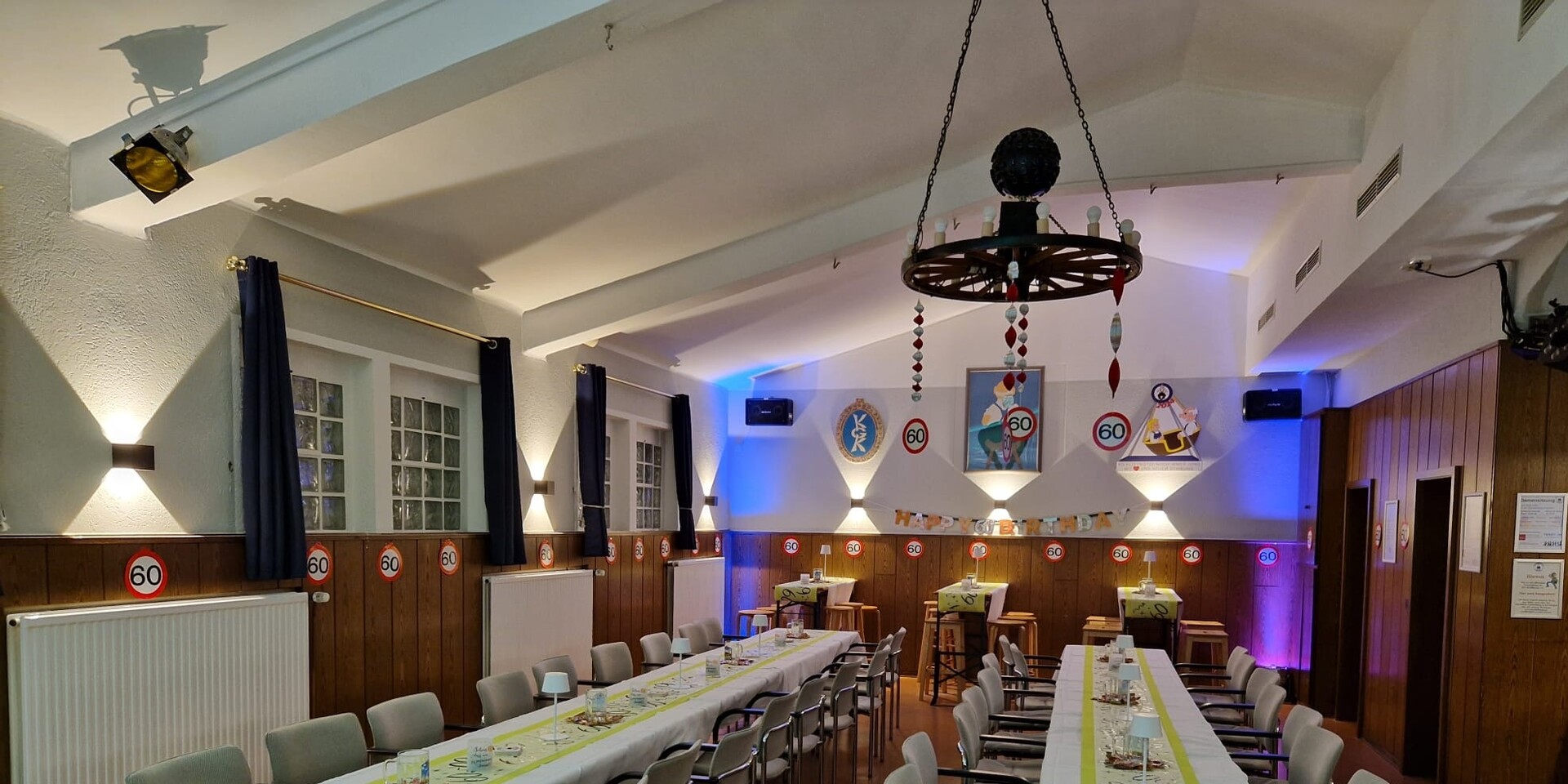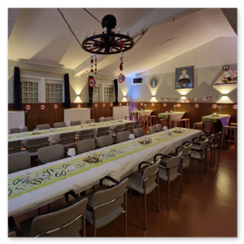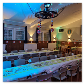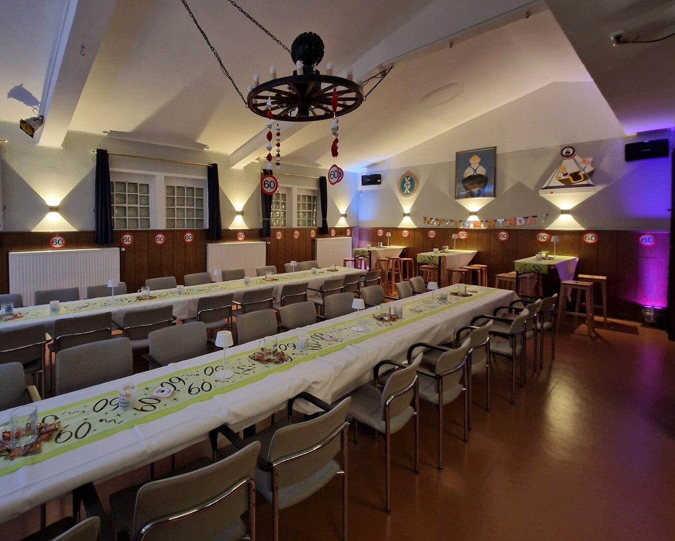 Der Saal mit Thekenbereich lässt viel Spielraum für Ihre Gäste. Mit bis zu 80 Personen können Sie feiern.